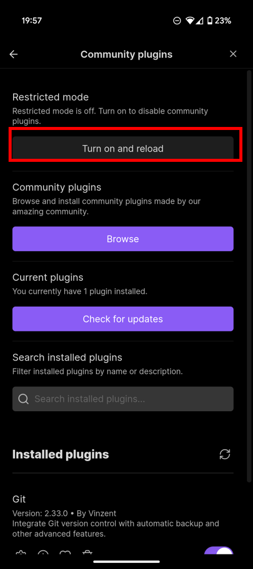 Android版のGitプラグインが不安定で起動に失敗するケースが多いようなので、代替方法をこちらの記事に記載しました。